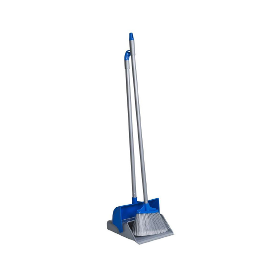 Pelle balayette aéroport format XXL à roulettes intégrées, capot et un balai vinyle avec un manche télescopique.